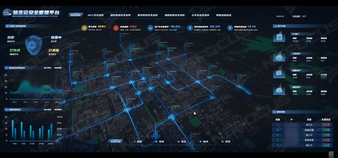 城市軌道網絡是復雜、多系統、大型城域網絡,資產數量多且復雜。網絡安全風險涉及IT網絡、工業控制網絡、物聯網網絡、無線網絡、云計算、大數據等,暴露面廣且防護難度大,很難在發生網絡安全事件時以最短的時間準確定位并處置問題。目前,城市軌道網絡安全是以單線為主的防護方式,企業難以了解整個全域的網絡安全狀態。